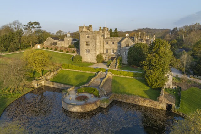 Aerial view of the East front of Sizergh Castle, near Kendal, Cumbria
