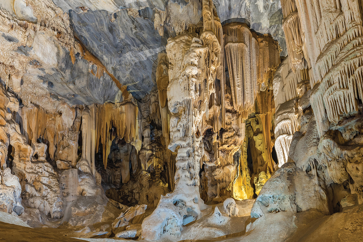 Stalactites and stalagmites in the Botha Hall of the Cango Caves near Oudtshoorn in the Western Cape Province