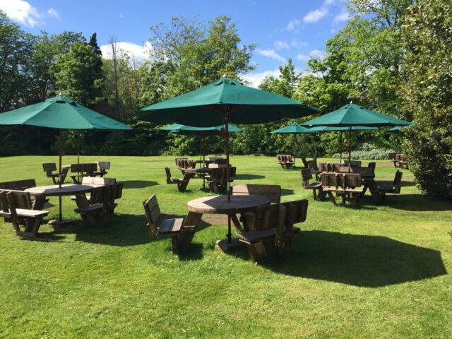 The Cairn Hotel, Harrogate – Back lawn with brollies up (NCN)
